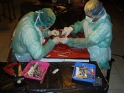 Middle: During the subsequent workshop there were 60 participants from all parts of the vast country. Some traveled six hours by plane. Since too little surgical hooks were present, the inventive Indonesians had dinner forks bent into shape. The enthusiasm was tremendous , as nowhere else. The heat also.