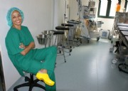 Left: In the operating theatre of the center for outpatient foot surgery in Vienna, interested spectators during a live operation.