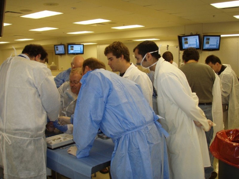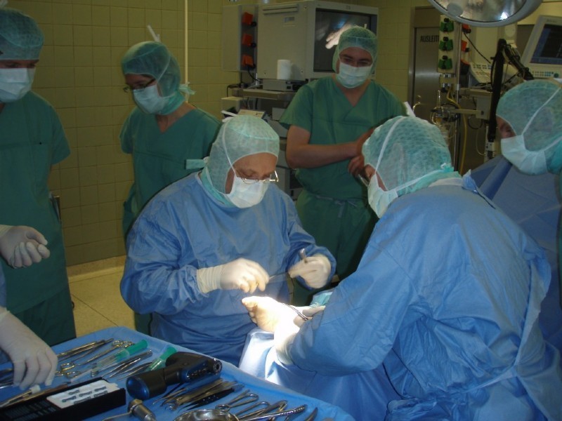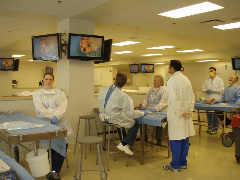 Middle: In the following workshop at the College of Podiatric Medicine , Prof. Vitek shows his surgical methods that are practiced by the participants on a corpse