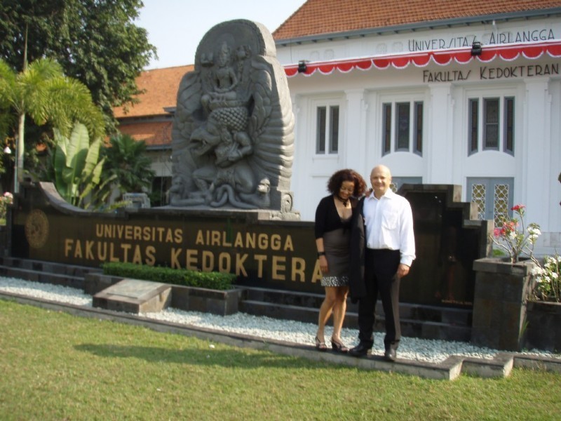 Left: In front of the Airlangga University in Surabaya , Indonesia, for the first Indonesian foot surgery course, as the only lecturer