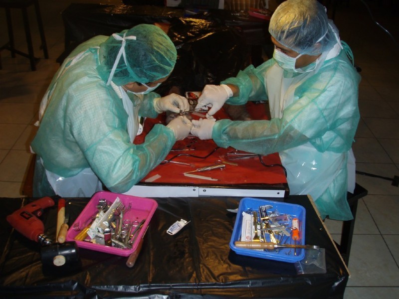 Middle: During the subsequent workshop there were 60 participants from all parts of the vast country. Some traveled six hours by plane. Since too little surgical hooks were present, the inventive Indonesians had dinner forks bent into shape. The enthusiasm was tremendous , as nowhere else. The heat also.