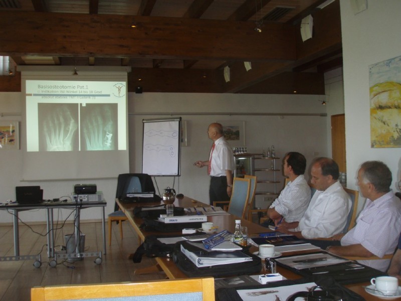 Left: Prof. Vitek explains foot surgery , Vienna, foot courses