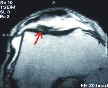 Example of a successful cartilage repair: Full cartilage defect on the patella sliding bearing.