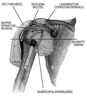 In case of a major tear of the rotator cuff, the arm can not be lifted. The shoulder umbrella, under which the soft tissue entrapment (impingement syndrome) can occur, consists of acromion, coracoid process and the band stretched between them (the coracoacromial ligament).