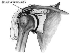 Of course, a more or less severe injury to the shoulder (a fall or shock) can lead to a rupturing of the strongly pre-damaged tendons cap, and an injured rotator cuff can also tear by itself (chafing).