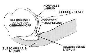 In the worst case the luxating humeral head also injures the anterior glenoid rim and the labrum.