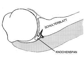 In an open surgery (incision in the axilla extension, about 10 cm long) each present defect will be removed. Thus, in case of a too flat or too small glenoid, a bone graft from the own iliac crest is used to enlarge the glenoid.